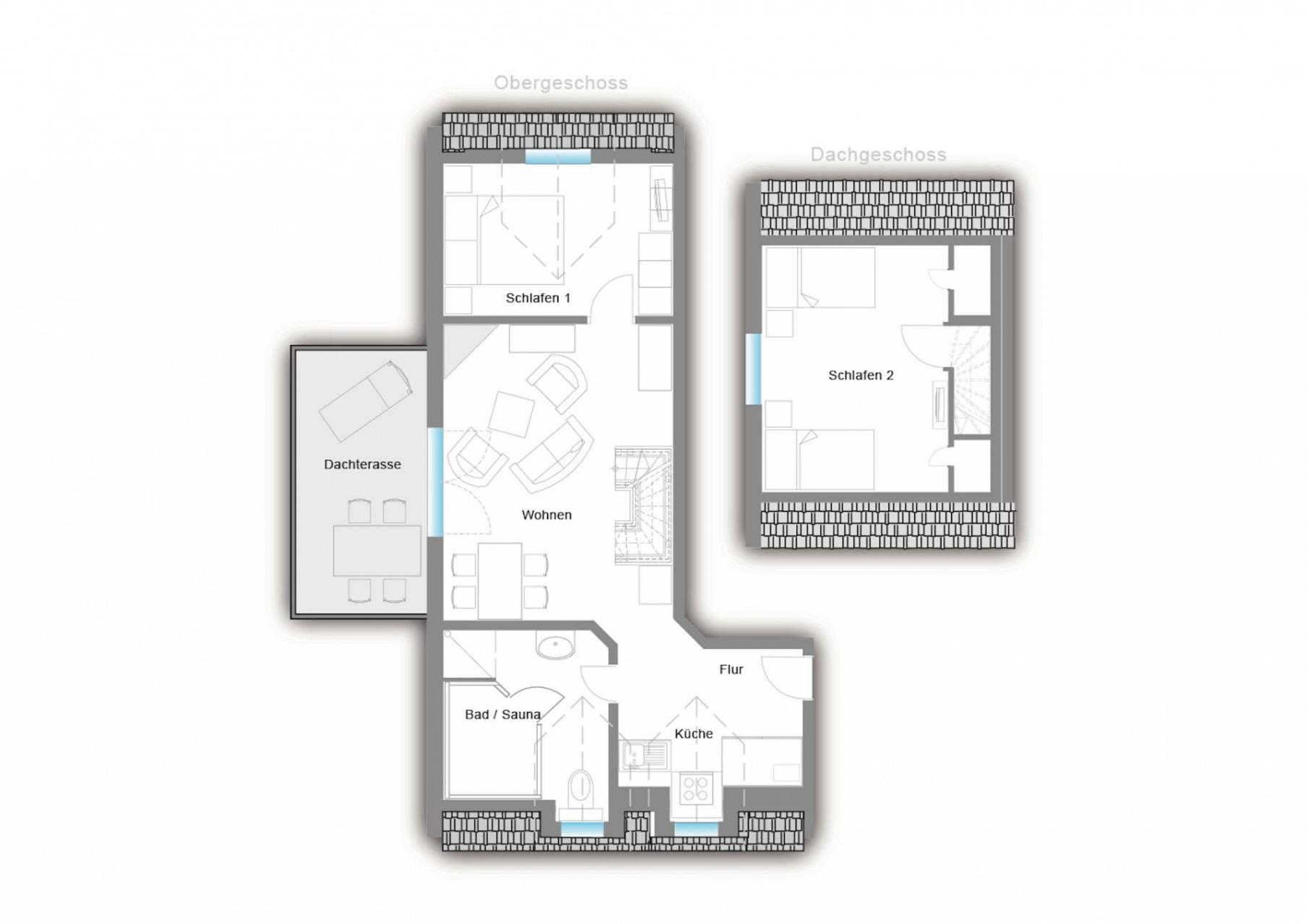 Im Bad finden Sie neben der ebenerdigen Dusche mit Raindance-Funktion, einen Handtuchwärmer, einen beleuchteten Spiegelschrank mit reichlich Stauraum auch unter dem Waschtisch und einen Fön. Auch das Badezimmer ist mit Fußbodenheizung ausgestattet. Ein Highlight dieser Wohnung ist die eigene Sauna. Genau das Richtige um Ihre schönsten Tage des Jahres zu geniessen und bei einem Saunagang herrlich zu entspannen. Der Wohn- und Flurbereich im Obergeschoss ist mit hochwertigen Fliesen und Fußbodenheizung ausgestattet.